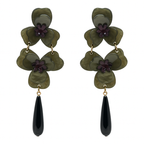 BETH OLIVE DOUBLE FLORAL RESIN DROP EARRINGS