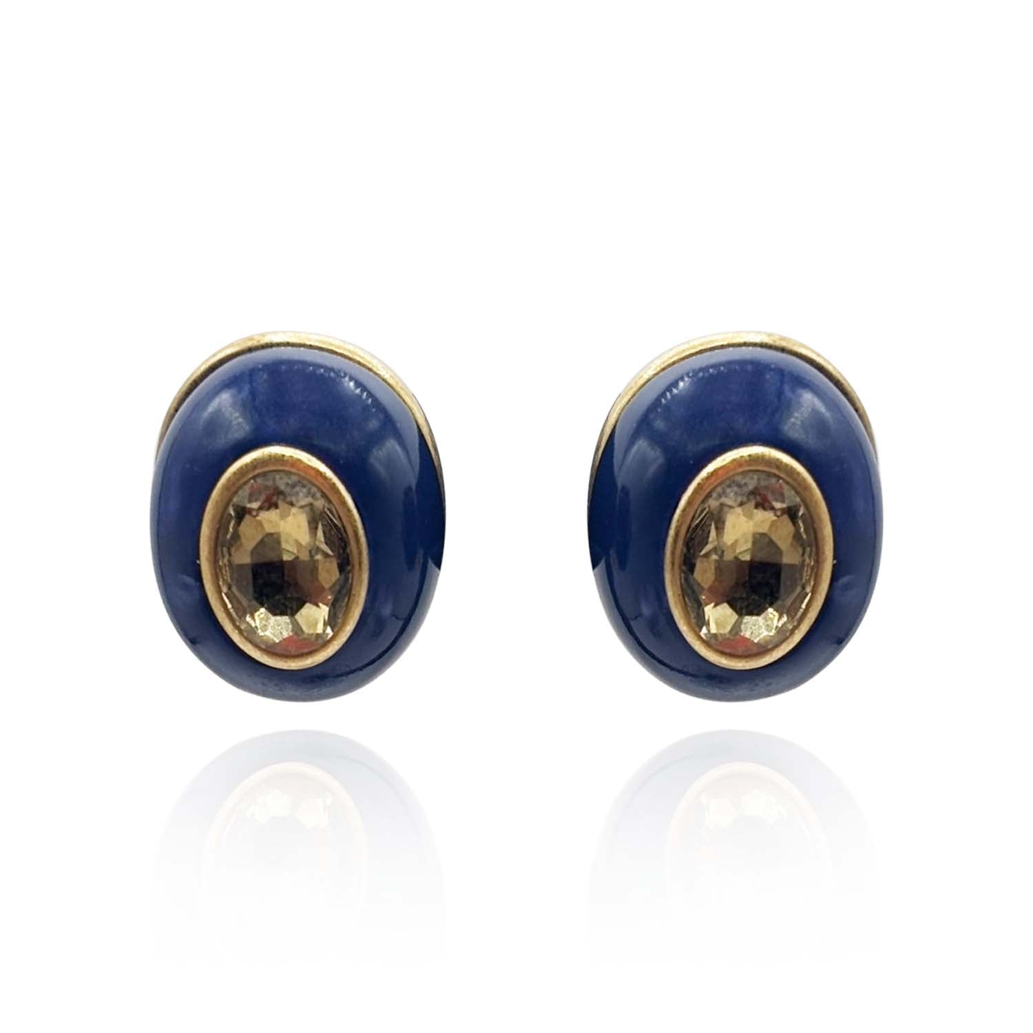 Stephanie Lapis Resin Pierced Earring With Topaz Glass Stone is backordered and will ship as soon as it is back in stock.