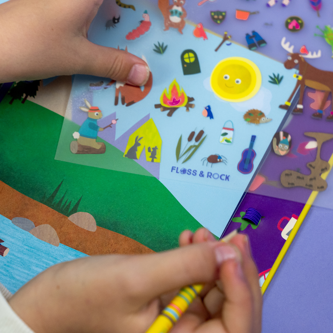 There's so much fun to be had with Transfers! This Adventure Transfer Fun comes with over 150 amazing Adventure themed transfers, 6 colourful scenes to place them onto, 6 plain pages for freestyle doodling and a pencil. Open the spiral bound book to find all your transfers neatly stored in the 'My Transfers' pocket, find your chosen illustration and flick through the pages to find the perfect scene to put them onto. Scratch over the top of the drawing with the Floss & Rock pencil provided and lift up the sheet, like MAGIC you'll find them transferred onto the page. Spend many happy hours sparking creativity and making beautiful pictures with campervans, woodland pals and more!