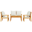 - Solid acacia wood: Crafted from solid acacia wood, this outdoor lounge set offers excellent sturdiness and stability. Acacia wood is a beautiful natural material, and its unique grain patterns make each piece of furniture one of a kind.