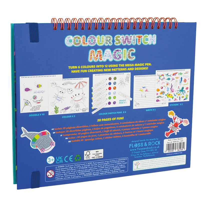 Colour Switch Magic is unique as not only do you get the super fun colour changing pens and mega magic white pen - you also get a ring bound book packed full of fun! Use the lined pages to write words and sentences, then use the magic white pen to make the letters stripey or multicolour, then let loose on the doodle pages and discover endless creative possibilities! The colour-in pages are brilliant for focus, encouraging patience and relaxation. Don’t forget about the sticker pages! Embellish your creative pages with fun stickers in the theme of your Colour Switch Magic book. Colour Switch Magic is perfect for experimenting and developing writing, drawing and colouring skills.
