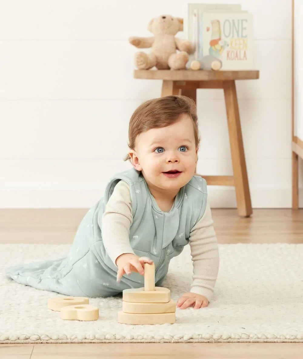 The 2.5 TOG Jersey Sleeping Bag is perfect for keeping a child warm overnight in rooms 17-23℃ / 63-73℉. The TOG rating means that there is no need for additional blankets in the cot when using this product, making it a safe-sleep option. Parents can be rest assured that the breathable organic, natural fibres will help regulate their child's temperature and prevent overheating. Parents can follow the FREE room thermometer and What to Wear guide provided with the product, to layer appropriately underneath to keep their child warm. We recommend pairing this pouch with one of our TOG-rated Layers or Bodywear underneath, and Arm Warmers can be added on top of the pouch for extra warmth (all sold separately).