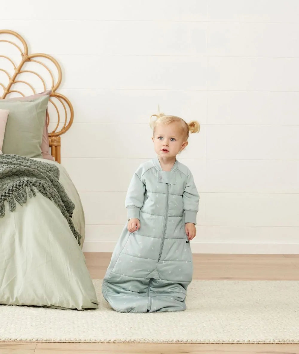 ErgoPouch - Organic Winter Long Sleeved 2 in 1 Sleeping Suit Bag - Sage - 2.5 TOG