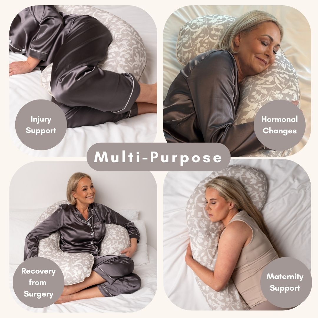 The BellaMoon™ Body Pillow is designed to offer full-body comfort and support, whether you're relaxing, lounging, growing a baby, recovering from an injury or operation, experiencing hormonal changes and hot-flushes, or simply - winding down for the night. Its award-winning C-shaped design wraps around the body, helping you feel supported from head to toe.