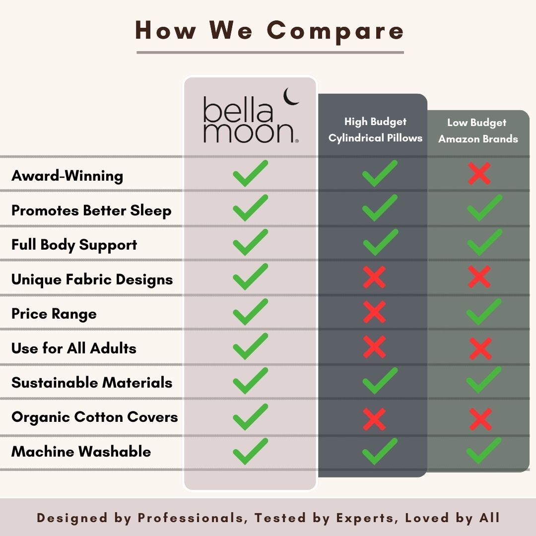 Experience exceptional comfort and thoughtful design with the BellaMoon™ Body Pillow— created for those who love to rest, relax and recover in style.