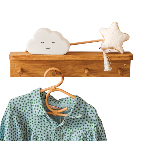 MINICAMP Floating Kids Bookshelf with Coat Hooks Made of Solid Oak