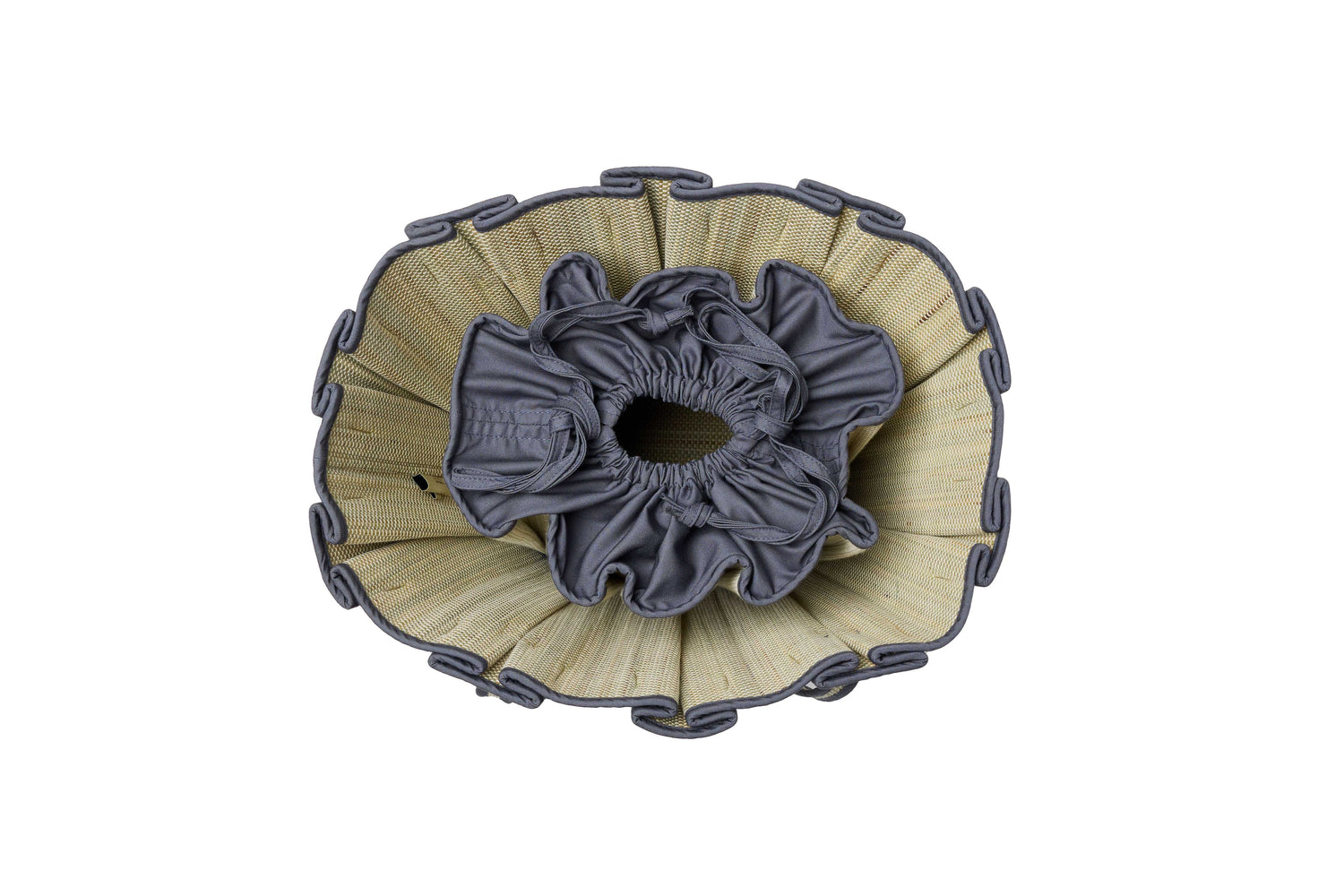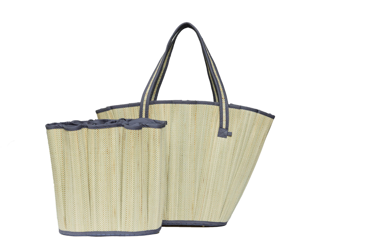 Sea Side features individual white threads woven through its hand-dyed earth-toned natural fibre base with slate blue fabric trim.