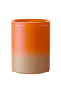 The thick hand-blown glass vessel has a unique tactile finish, mimicing the feel of sandstone. The orange glow
