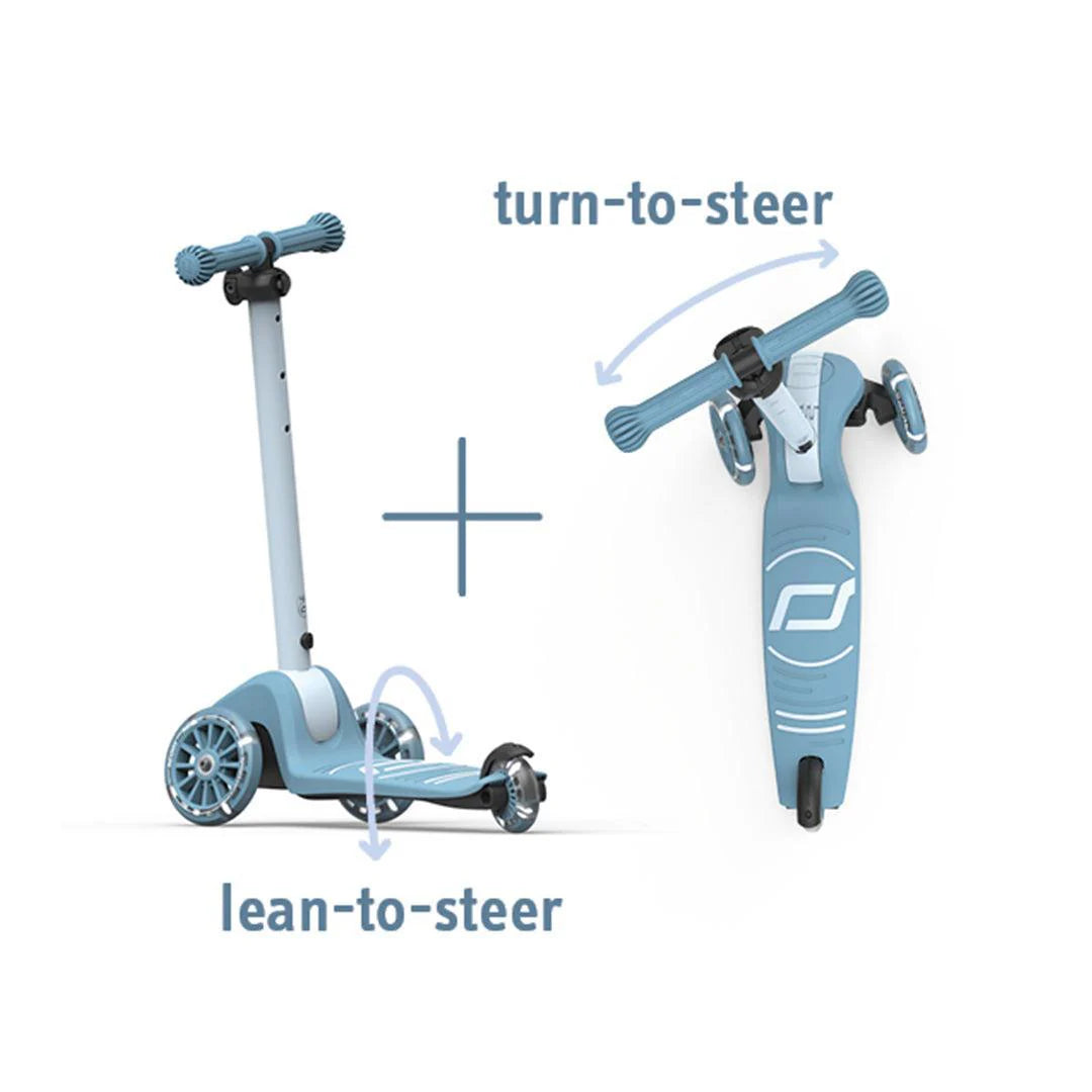 The Highwaykick 3S Scooter is ideal for children aged 3 years and older or between 96 and 130 cm tall. The special feature of this children's scooter is its dual steering system – the scooter can be steered using either classic twist steering or by shifting your weight, making it easier and safer for children to control. Thanks to the 3-way height-adjustable handlebar, the scooter grows with your child and offers years of riding fun. The new mechanism for folding the scooter makes it child's play to fold the handlebar backwards, allowing the scooter to be stored and transported easily and compactly.