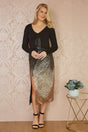 Yumi Black And Gold Sequin Split Fitted Midi Skirt