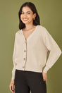 Yumi Oatmeal Relaxed Fit Cardigan With Stitch Detail - Cream / L is backordered and will ship as soon as it is back in stock.