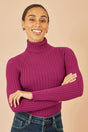 Yumi Plum Ribbed Knit Roll Neck Jumper