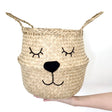 Made from handwoven seagrass, each basket is lovingly hand embroidered with a sweet smiling lioness face. She makes a great pair with our natural lion basket!