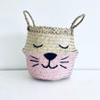 Made from handwoven seagrass, each basket is lovingly hand-painted and embroidered, making each once unique. The smaller size is a great way to store lego or puzzles and keep tidy on a shelf.