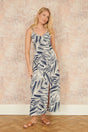 Yumi Navy Leaf Print Maxi Dress With Cross Back