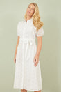 Yumi White Cotton Broderie Anglaise Midi Shirt Dress