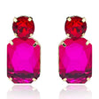Fuschia Crystal Ocatgon and Ruby Round Stone Drop Earrings