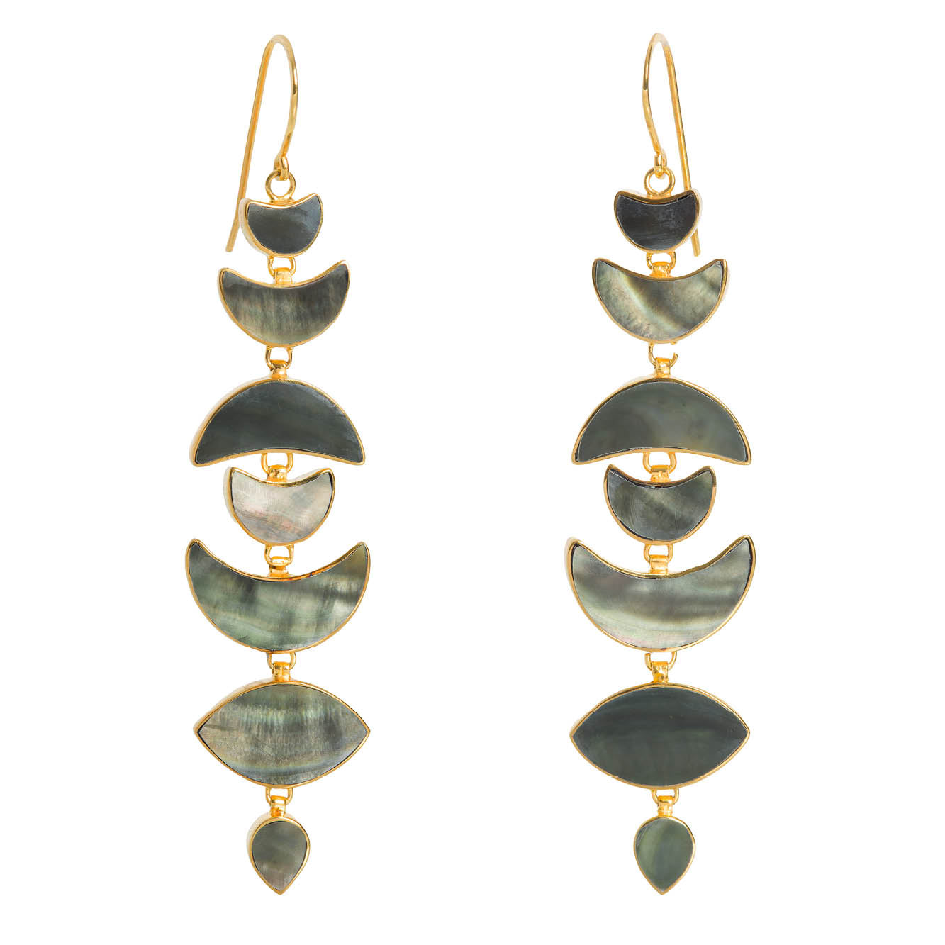 Harness the mystery of the night with our Warrioress Noir Moon Drops. Beautifully handcrafted in 18ct Gold Plated Sterling Silver with dark, iridescent Mother of Pearl Shell, they celebrate feminine strength and lunar power. Bold yet timeless, they shine for the woman who thrives in her own light.