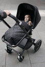 The ultimate cold-weather accessory for your stroller, our quilted footmuff will keep your little one ultra-cosy and protected against rain, snow and wind. 100% recycled and crafted from high-quality water-resistant quilted polyester, with snuggly borg fleece lining. Finished with a rubber branded tab on front cover, and sleek gunmetal branded zip pullers. Featuring a five point universal harness system with 3 variable height options, that is easy to fit and compatible with most buggies. The footmuff includes an integrated fold-over cuff on the reverse of the hood, allowing it to hook over the top of your stroller seat to keep your Tiba+Marl footmuff in place (ideal for the Yoyo).