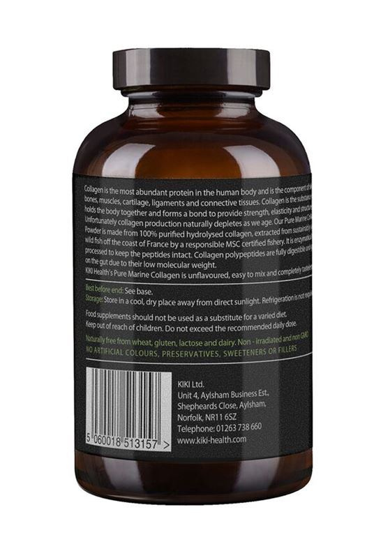 Pure Marine Collagen - 200g by Kiki Health. Kiki Health’s Pure Marine Collagen is Type 1, purified hydrolysed collagen, which means it’s easier to absorb than non-hydrolysed marine collagen.
