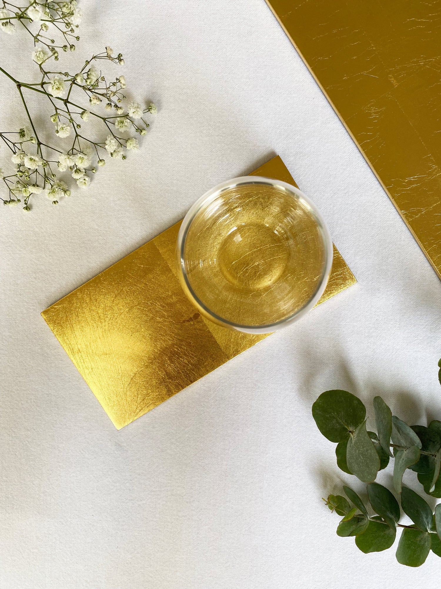 Handcrafted with care by skilled artisans, our signature lacquer double coasters in gold leaf are a celebration of artistry and craftsmanship. Unlike mass-produced items, these coasters embrace subtle variations that make each piece truly unique - a detail we absolutely love!