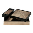 Add a touch of sparkle to your dining experience with our luminescent Matbox in Taupe. This trademarked, one-of-a-kind product is available in two elegant options: silver or gold leaf lacquered boxes, skillfully handcrafted by artisans, or a contemporary alternative featuring crystal-clear, precision-cut acrylic.