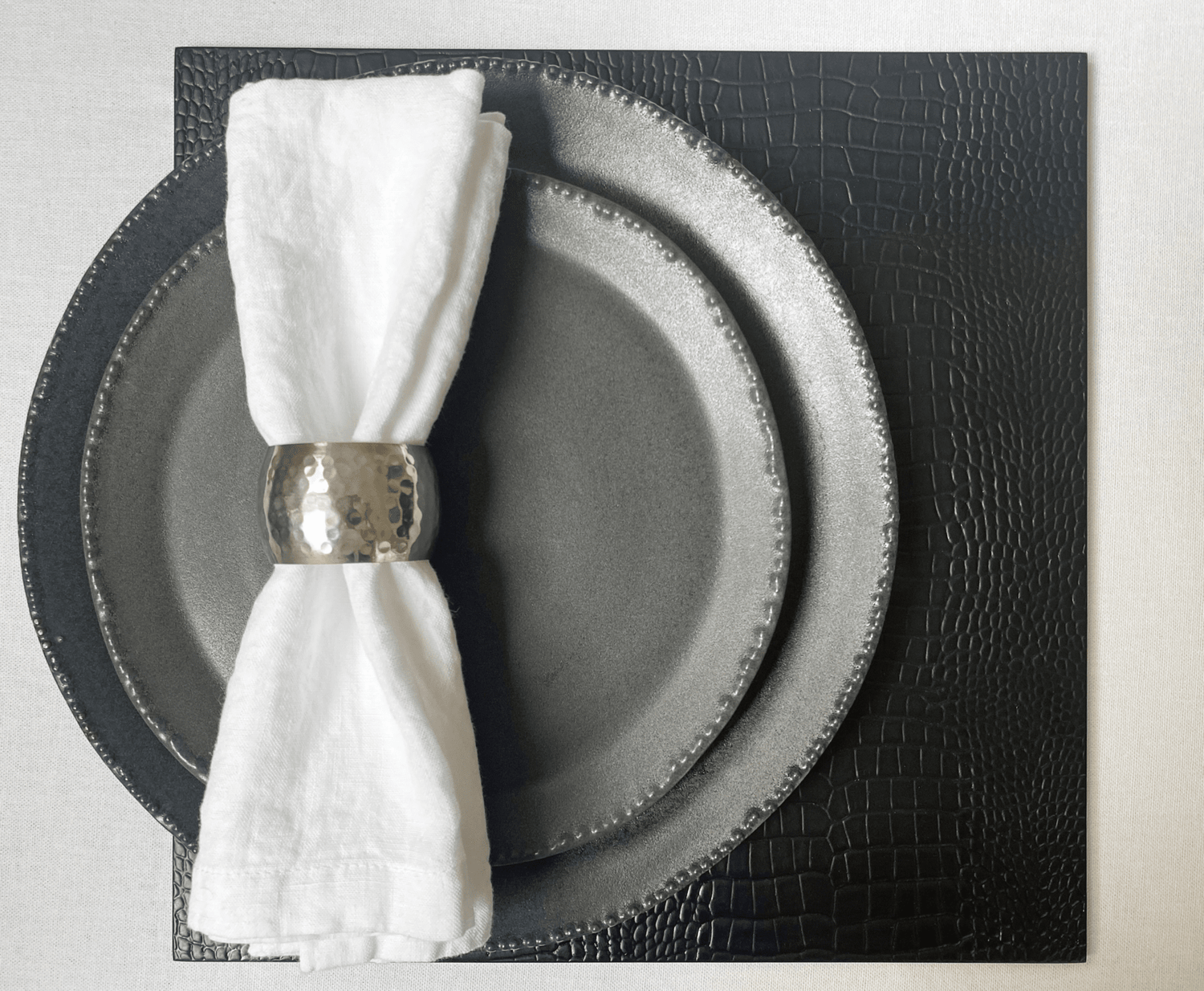 The Acrylic Placebox in Python Black is a unique collection of placemats for a table setting of six.
