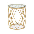 Make a modern statement with your decor. The Ackley side table has a clear glass top and patterned gold frame. The geomertic patterns of the sleek metallic lines add texture and depth to interior. Hastle of the frame is perfectly complemented by the clear glass top.