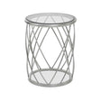 Make a modern statement with your decor. The Ackley side table has a clear glass top and patterned silver frame. The geomertic patterns of the sleek metallic lines add texture and depth to interior. Hastle of the frame is perfectly complemented by the clear glass top.