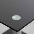 Both tiers are made from safe tempered glass, a silver circle at each corner creating a tonal counterpoint to their black finish. The reflective chrome finish on the tubular legs accentuates its contemporary look.