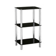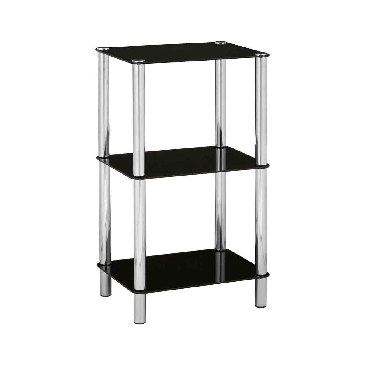 Each shelf has a contemporary black finish, while the tubular frame is made from strong metal, its silver finish creating a counterpoint to the jet black glass. With three separate tiers, it offers plenty of display space.