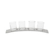 The tealight holder consists of four pieces of glass placed evenly and respectively on a slightly elevated and curved base made from aluminium and finished in silver making it a modern accent piece.