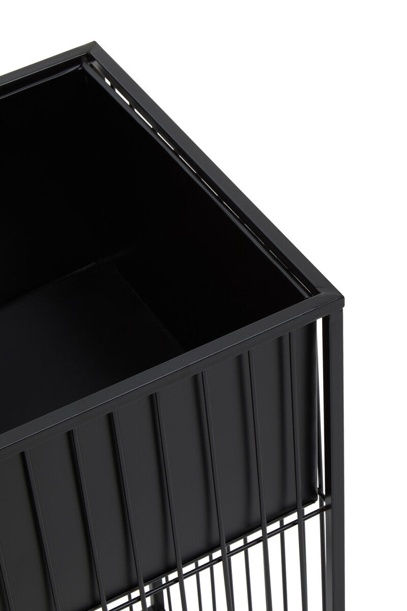 This floor standing planter is made from robust iron and exhibits a caged-shaped design. The square planter in a black finish sits neatly at the top of the open wire frame creating a three-dimensional allure and depth to the floral setting.