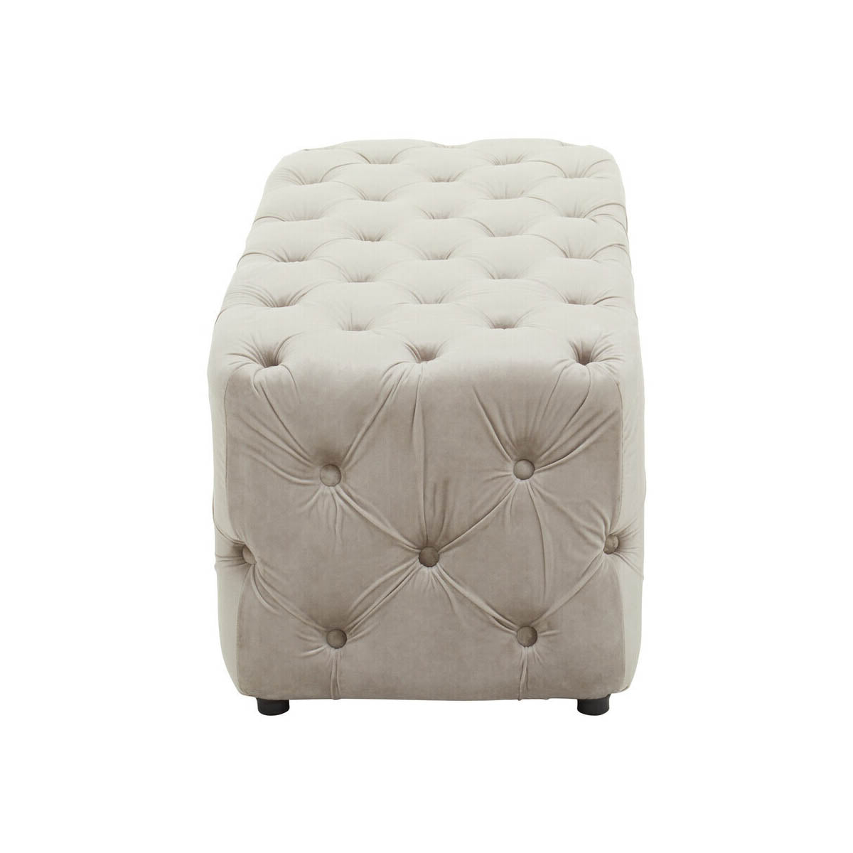 Featuring timeless elegance, this traditional button-tufted bench is upholstered with mink velvet. Ensuring a luxurious seating experience, this versatile bench is well-suited to an array of contemporary styles.