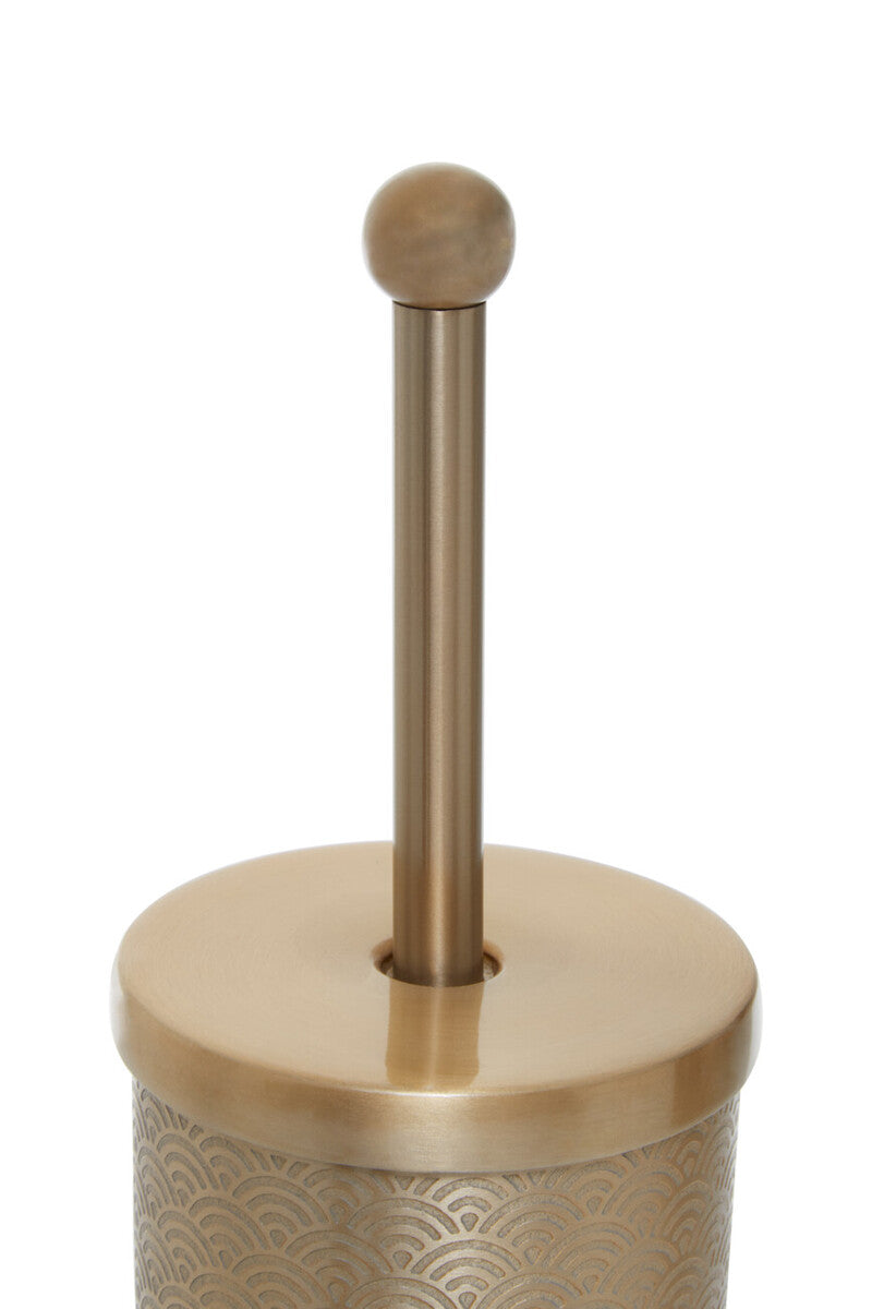 Made from sturdy aluminium, this toilet brush in champagne finish comes with a holder exhibiting an etched detail. This versatile toilet brush with white bristles fits neatly in the case making it an ideal product for home office use.