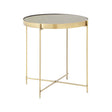 This contemporary side table features a black finish mirrored top which is inset to a coordinating band of brushed bronze metal. The tabletop is supported by four tubular legs, their slim and unfussy design adding a touch of minimalism to the table's aesthetic. Its sleek look makes it suited to coordination with boutique hotel furniture and accessories.