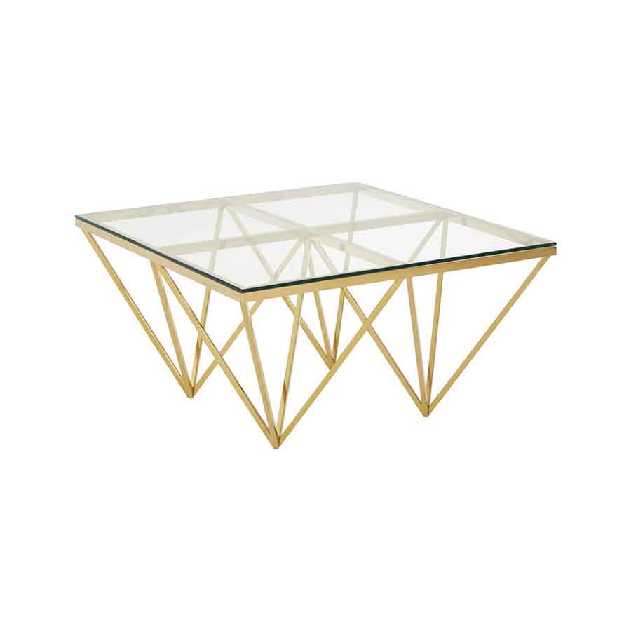 Allure Gold Finish Prismaric Square Coffee Table is backordered and will ship as soon as it is back in stock.