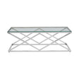 The smooth stainless steel frame has a reflective silver finish, and the rectangular top is made from clear tempered glass. Display it in the living room to make a luxe design statement.
