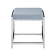 The plump square seat is dressed with soft powder blue velvet, a tactile finish that rewards the touch. The seat is set into a frame made from sleek stainless steel, its simple angular lines giving this accent piece a chic, minimal look.