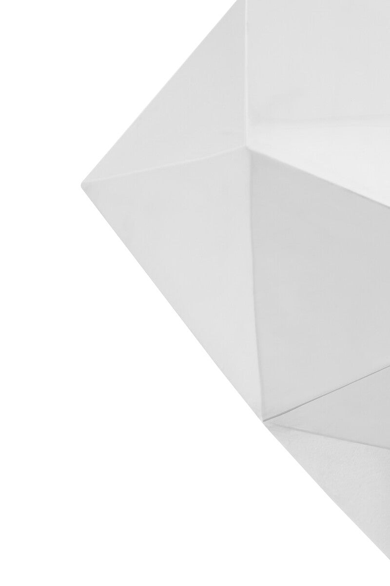 This striking coffee table is made from smooth stainless steel, and adds geometric design to the living room. The upper section is notable for the series of triangular shapes that combine to create its hexagonal tabletop. Its reflective silver finish makes it suited to coordinating with metallic lighting and accessories.