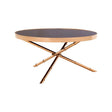 Alvaro Round Coffee Table with Rose Gold Legs and Black Glass Top