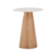 Adding a touch of glamour to your decor is easy with the Amira side table. A white table top is complemented by a solid chunky golden base with hammered surface featuring embossed dots all over the base.