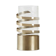 The gold finish stainless steel form an elegant spiral design that gently wraps around the hurricane glass insert of this candle holder. The decorative scrolled wires harmonise with the textured base of this luxe accent piece.