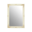 Featuring a bone white finish, this wall mirror has bevelled corners and sides that accentuate gentle depth of its frame. Its outer edges are adorned with a beaded detail contrasted with a filigree pattern on the inner layer. Elegantly carved decorative motifs on each corner contribute to its striking elegance.