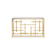 Featuring a labyrinth design, a rectangular white marble top is encased in a gold-finished stainless steel frame. Chic in style, this console table is ideal to place in a hallway or living room.