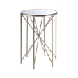 This minimal yet stylish table creates a contemporary and modern theme. Accessorised with a round mirrored glass top, the six slender legs are neatly fixed to metal strips to create an eye-catching aesthetic.