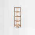 The shelf unit has a simple, uncomplicated design, with five shelves that are great for storing towels, soaps, and other bathe accessories. It's made from beautifully grained walnut wood and has an oiled finish.