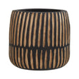 The organic pattern is skilfully engraved in a large wooden planter. The black and natural tones emphasize the rustic nature of this decorative planter, making it a great choice to display plants in an eclectic space.