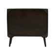 Boasting protruding metal circles in the warm metallic finish, this sideboard is a nod to the golden era of mid-century. Offering storage with two doors and a shelf, the black mango wood frame sits atop oblique legs and combines style with functionality.