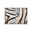 This set of two wall art exhibits multicoloured schemes of light and dark shades. The wall art features non fitting shapes of abstract waves on canvas with textured brushstrokes, held neatly in rectangular frames.